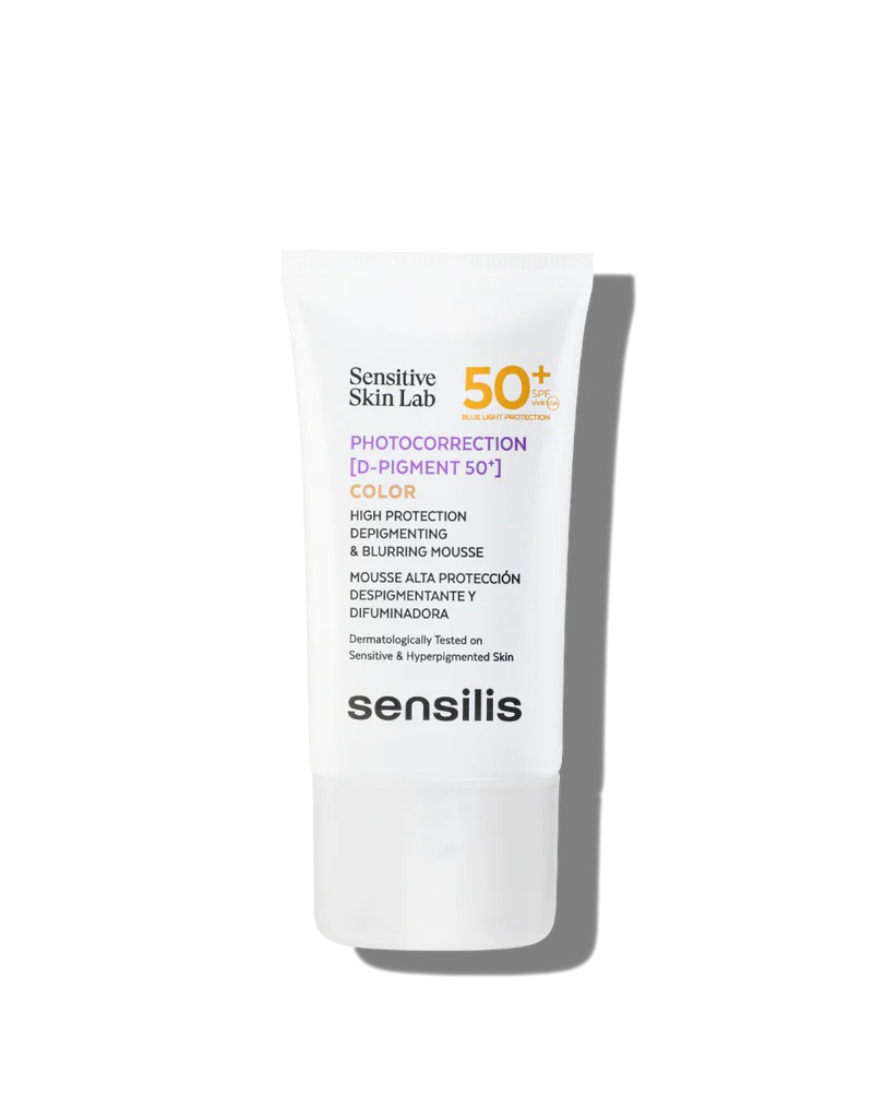 Mousse con muy alta protección 50+ con color que protege frente al UVA, UVB y la luz azul y corrige y difumina las manchas en pieles sensibles hiperpigmentadas de cualquier edad. Con filtros no potencialmente disruptores endocrinos, no solubles al agua y no nanos.