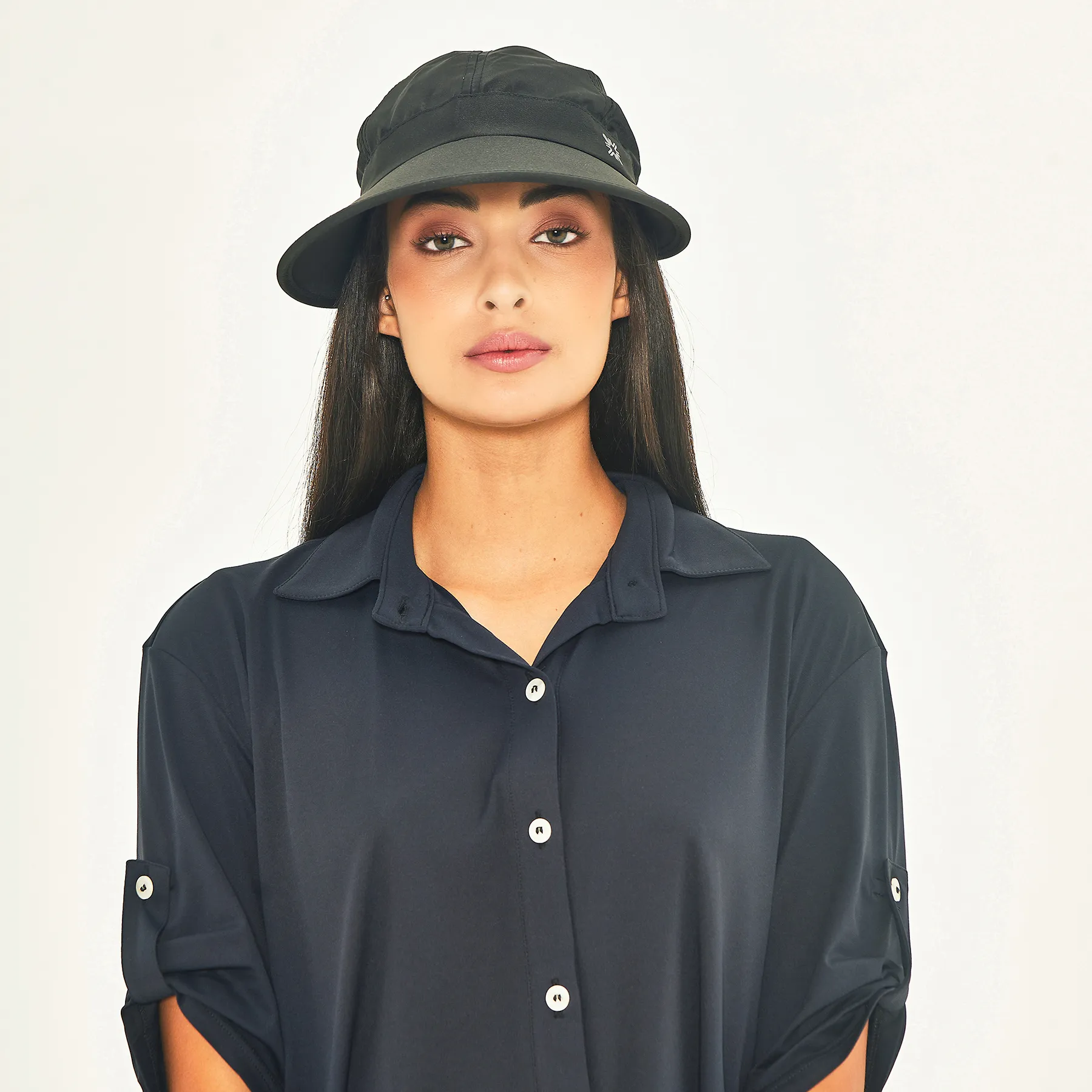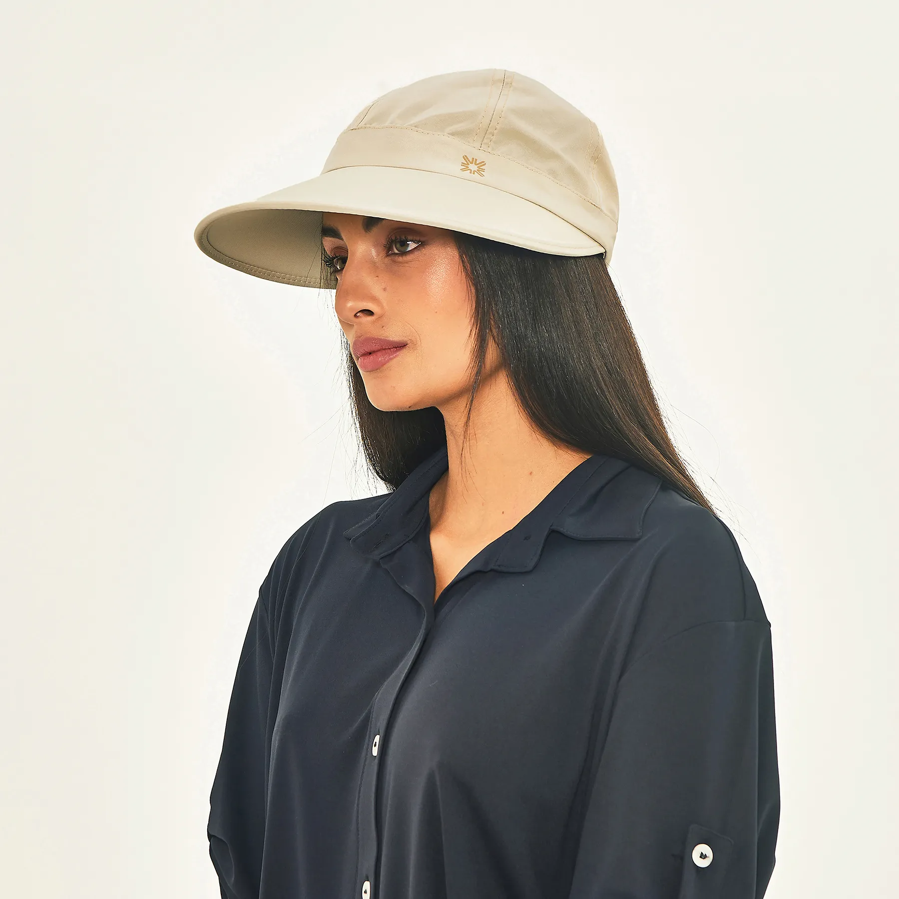 Un modelo clásico, la visera UV Nice está confeccionada con tejido fotoprotector, garantizando una protección total contra los rayos UV del rostro. Su diseño te permite usarlo cómodamente, con el cabello recogido o suelto. Los recortes en la copa con forma de cuña, permiten un ajuste ideal al usarlo.